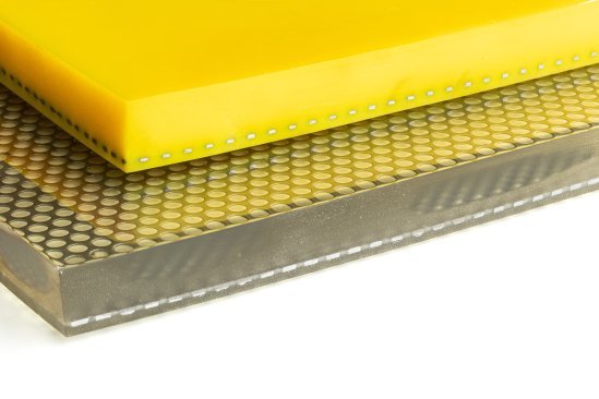 Korkean kulumisen kohteisiin tarjoamme polyuretaanista valmistettua suojalevyä, jonka sisällä oleva teräslevyverkko mahdollistaa levyn taivuttamisen eri muotoihin ja samalla kiinnittämisen poraruuveilla alustaan helposti ja nopeasti.